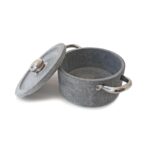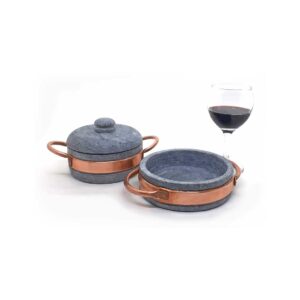 Realizzata in pietra ollare naturale con manici in acciaio inox e pomolo coordinato, la casseruola Efestus da 3,4 l unisce lusso, stile e funzionalità in un design compatto. Ideale per la cucina quotidiana e per le piccole riunioni, le sue proprietà antiaderenti naturali favoriscono una cottura più sana con poco o niente olio, mentre la pietra ollare trattiene bene il calore, mantenendo i cibi caldi più a lungo. Questo pezzo raffinato e minimalista aggiunge un tocco di eleganza a qualsiasi ambiente, esaltando sia la presentazione che il piacere dei vostri pasti.