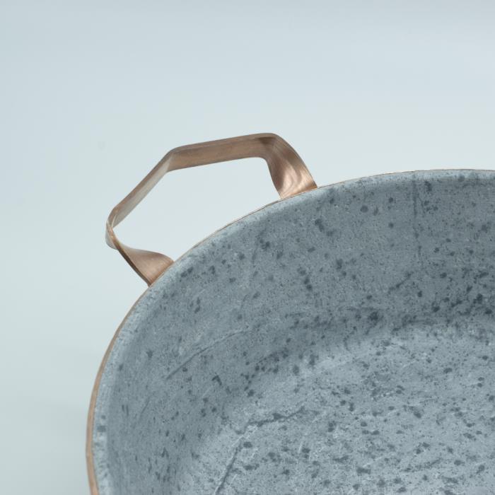 Pentola in pietra ollare, chiamata Lavec, rilegata in rame. Ogni pezzo viene realizzato a mano dall’artigiano. Sono pentole naturali perchè non vengono usati né smalti, né vernici durante le fasi di produzione.