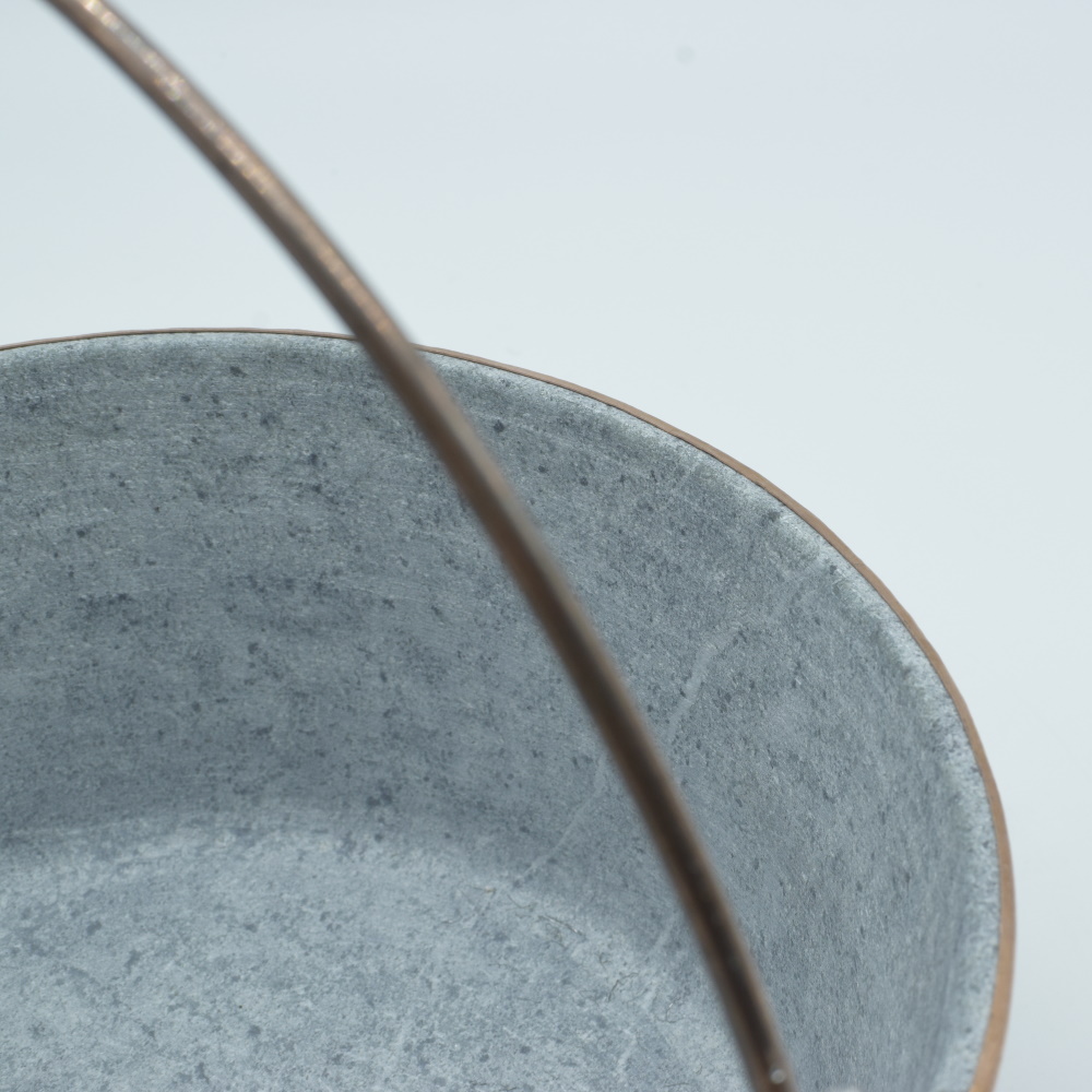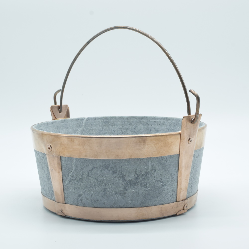 Pentola in pietra ollare, chiamata Lavec, rilegata in rame. Ogni pezzo viene realizzato a mano dall’artigiano. Sono pentole naturali perchè non vengono usati né smalti, né vernici durante le fasi di produzione.