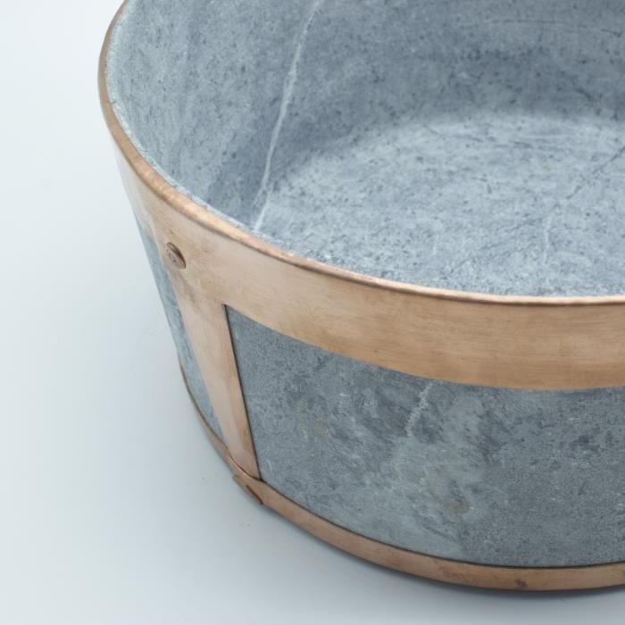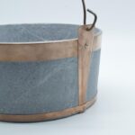 Pentola in pietra ollare, chiamata Lavec, rilegata in rame. Ogni pezzo viene realizzato a mano dall’artigiano. Sono pentole naturali perchè non vengono usati né smalti, né vernici durante le fasi di produzione.